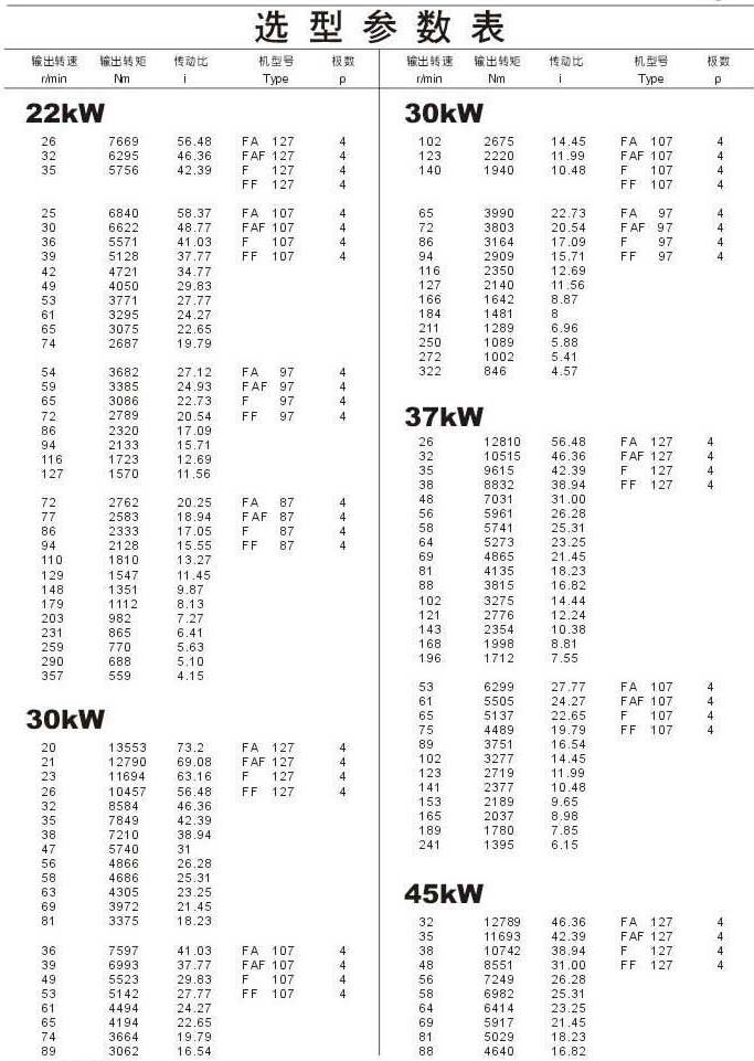 選型參數表22kW (續),30kW ,37kW ,45kW